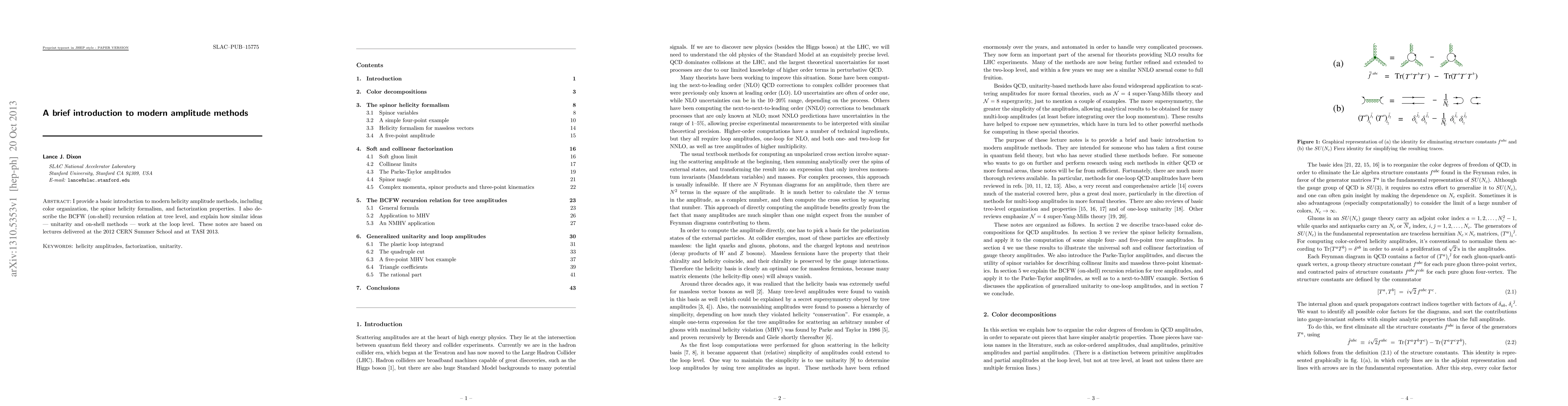This paper introduces modern helicity amplitude methods, including color organization, spinor helicity formalism, and recursion relations, to simplify calculations in particle physics. It also explains how these methods work at loop level, with implications for understanding high-energy collisions.