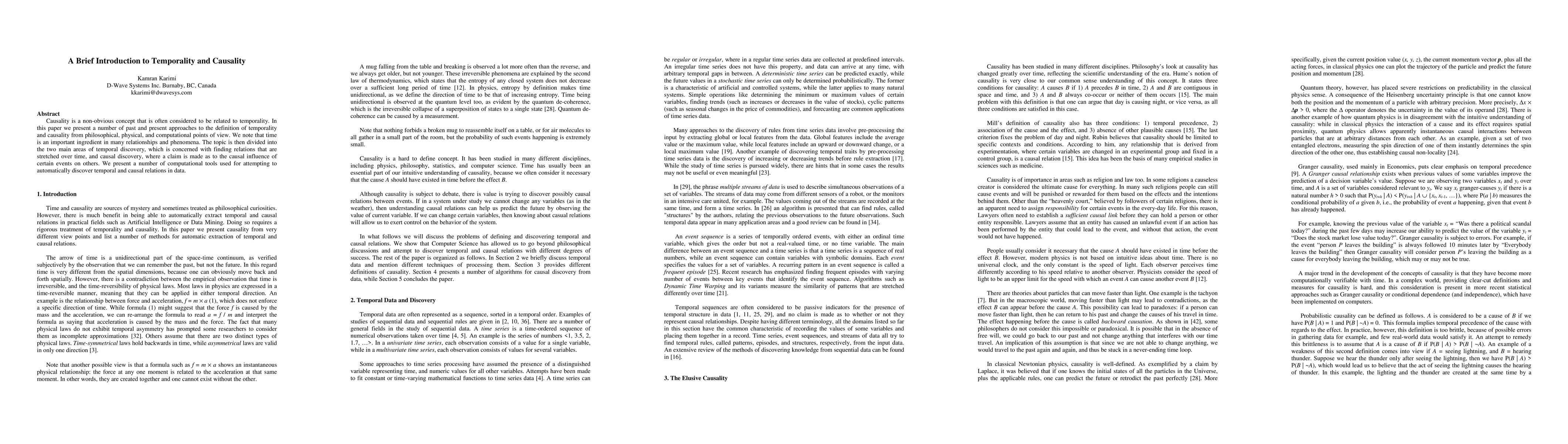 This paper explores concepts of temporality and causality from philosophical, physical, and computational perspectives, highlighting tools for automatically discovering temporal and causal relations in data.