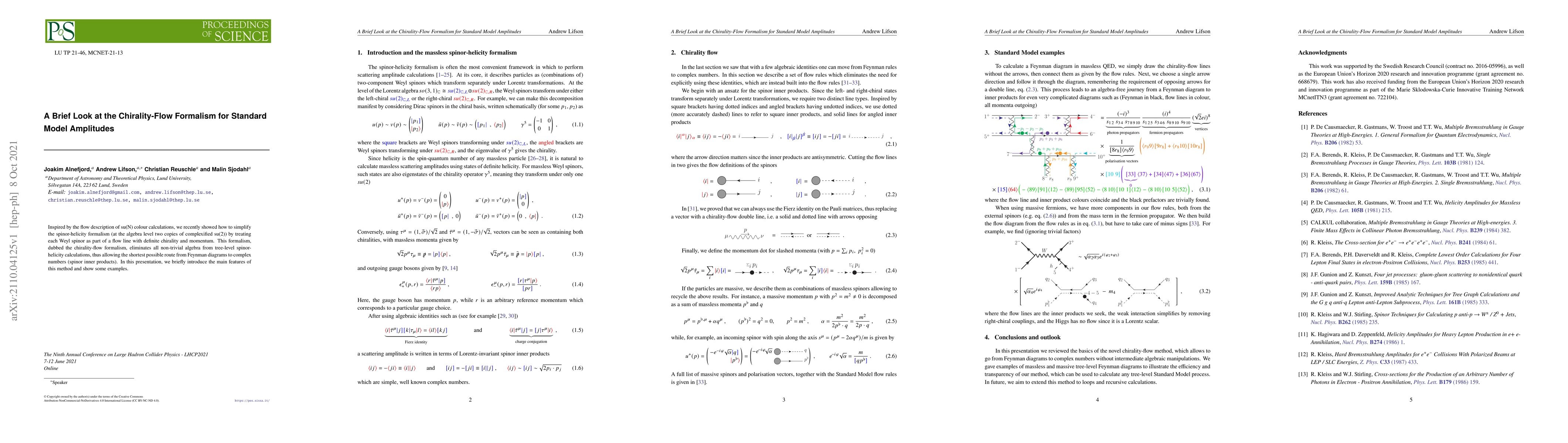The chirality-flow formalism simplifies spinor-helicity calculations for Standard Model amplitudes by treating Weyl spinors as part of flow lines with definite chirality and momentum.