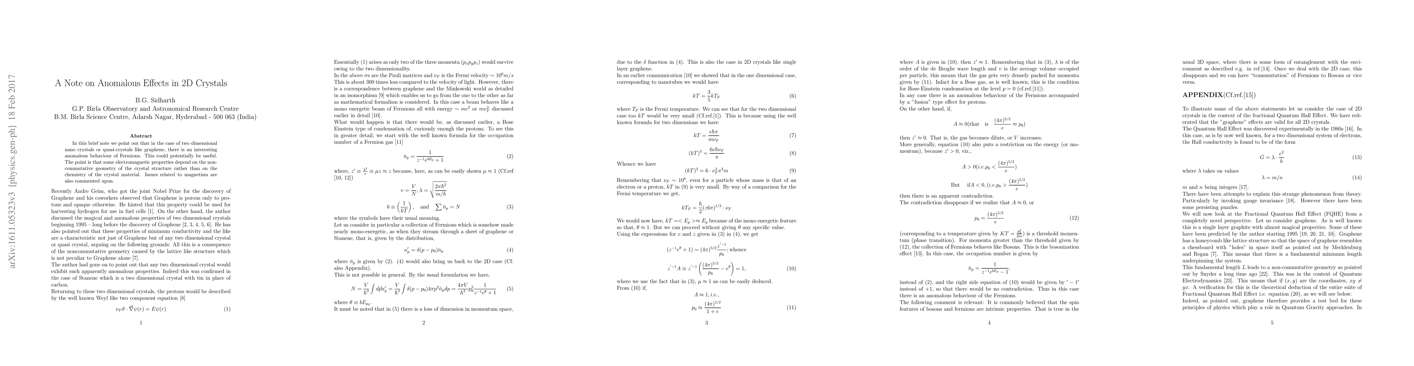 This paper highlights an intriguing anomalous behavior of Fermions in 2D crystals such as graphene, suggesting potential practical applications.