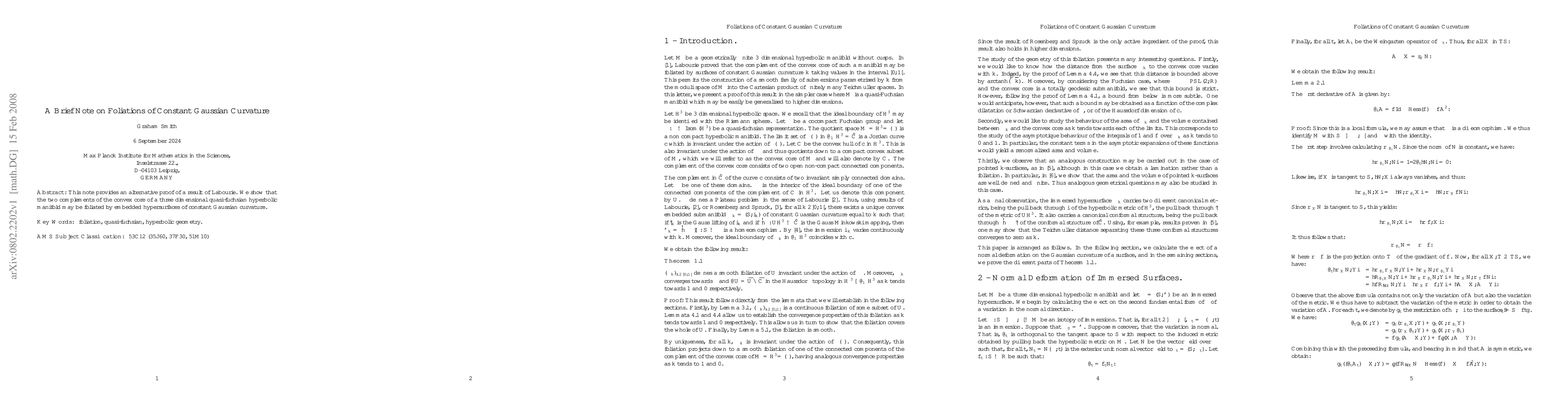 Researchers prove that in a specific type of hyperbolic manifold, two complements of its core can be divided into surfaces with constant curvature.