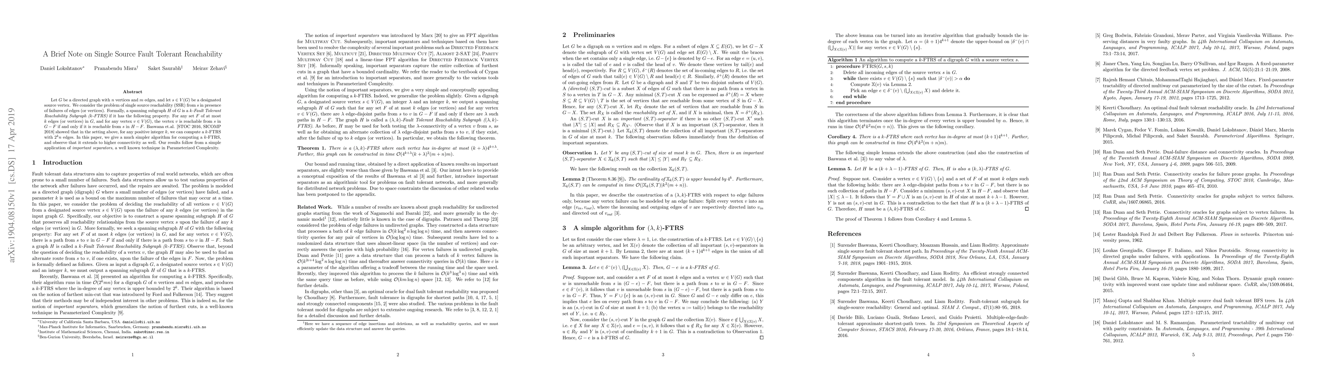 This paper presents a simpler algorithm for computing a $k$-Fault Tolerant Reachability Subgraph (k-FTRS) in directed graphs, extending the work of Baswana et al. The authors utilize the technique of important separators from Parameterized Complexity to achieve their results.