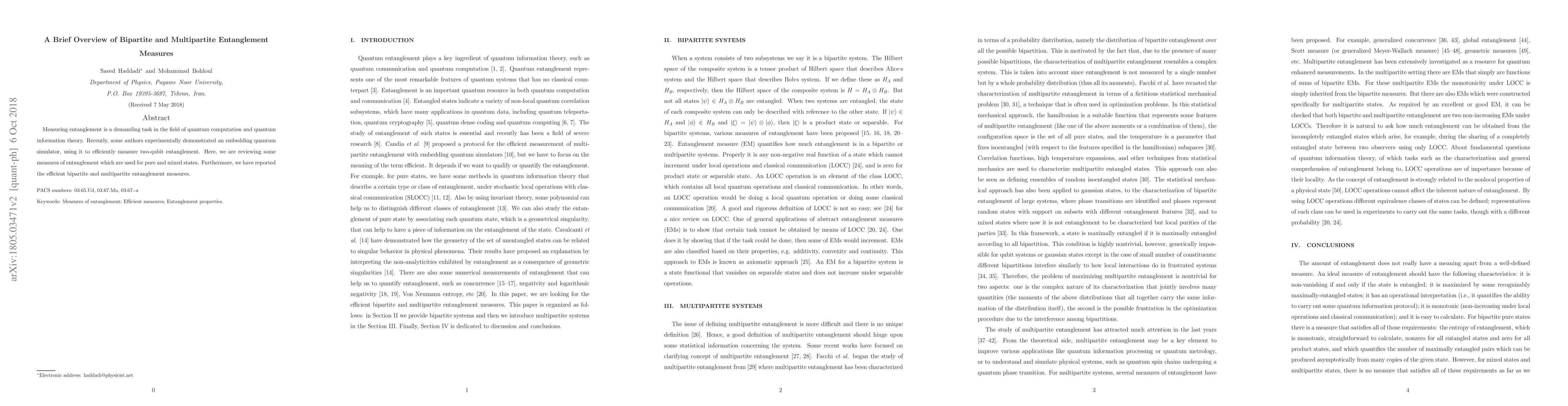 Measuring entanglement is a demanding task in the field of quantum computation and quantum information theory. Recently, some authors experimentally demonstrated an embedding quantum simulator, using it to efficiently measure two-qubit entanglement. Here, we are reviewing some measures of entanglement which are used for pure and mixed states. Furthermore, we have reported the efficient bipartite and multipartite entanglement measures.