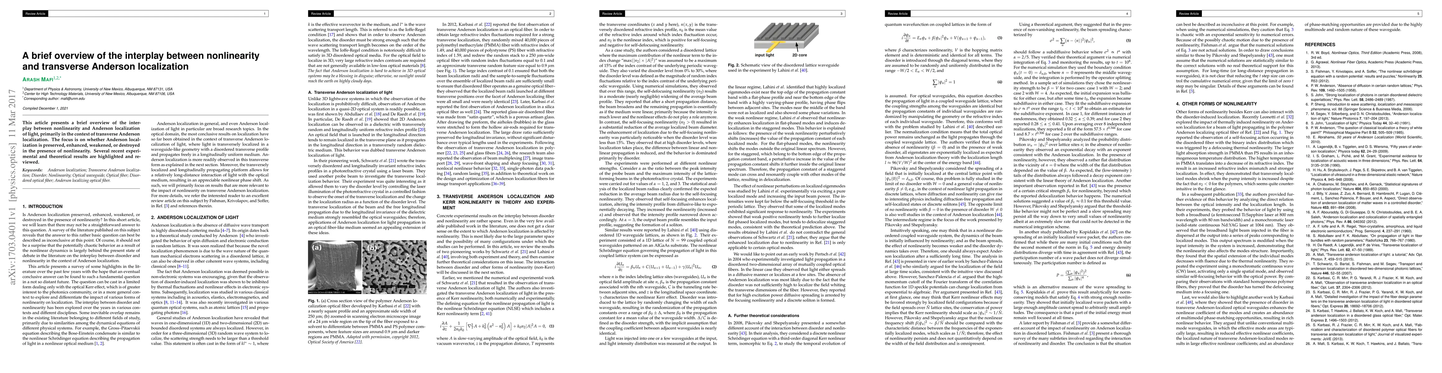 This article presents a brief overview of the interplay between nonlinearity and Anderson localization of light, primarily in the context of transverse Anderson localization. The focus is on whether Anderson localization is preserved, enhanced, weakened, or destroyed in the presence of nonlinearity. Several recent experimental and theoretical results are highlighted and reviewed.