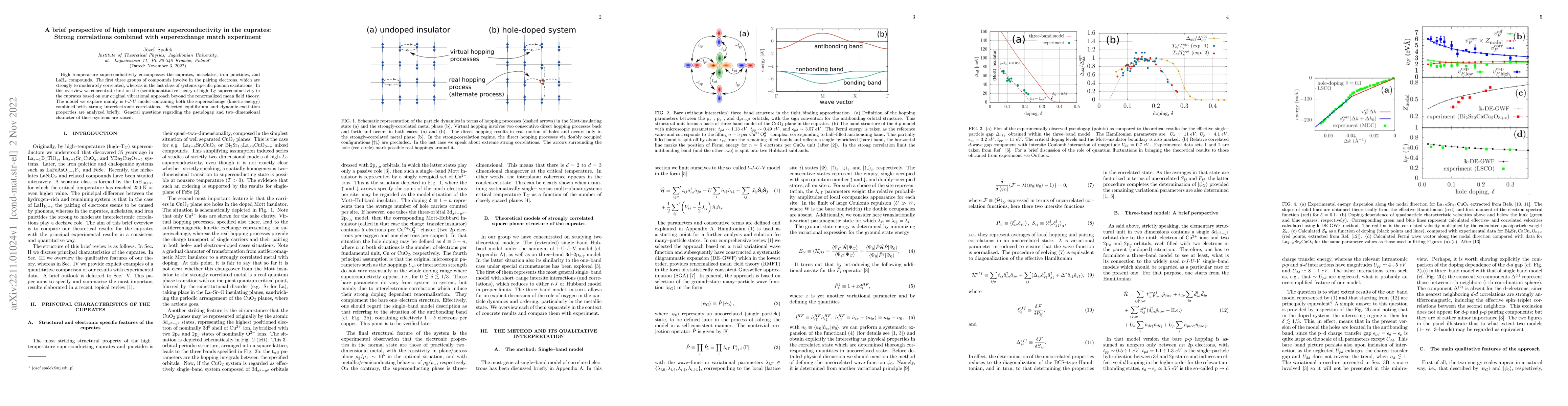 High temperature superconductivity encompasses the cuprates, nickelates, iron pnictides, and LaH$_x$ compounds. The first three groups of compounds involve in the pairing electrons, which are strongly to moderately correlated, whereas in the last class of systems specific phonon excitations. In this overview we concentrate first on the (semi)quantitative theory of high T$_{C}$ superconductivity in the cuprates based on our original vibrational approach beyond the renormalized mean field theory. The model we explore mainly is $t$-$J$-$U$ model containing both the superexchange (kinetic energy) combined with strong interelectronic correlations. Selected equilibrium and dynamic-excitation properties are analyzed briefly. General questions regarding the pseudogap and two--dimensional character of those systems are raised.