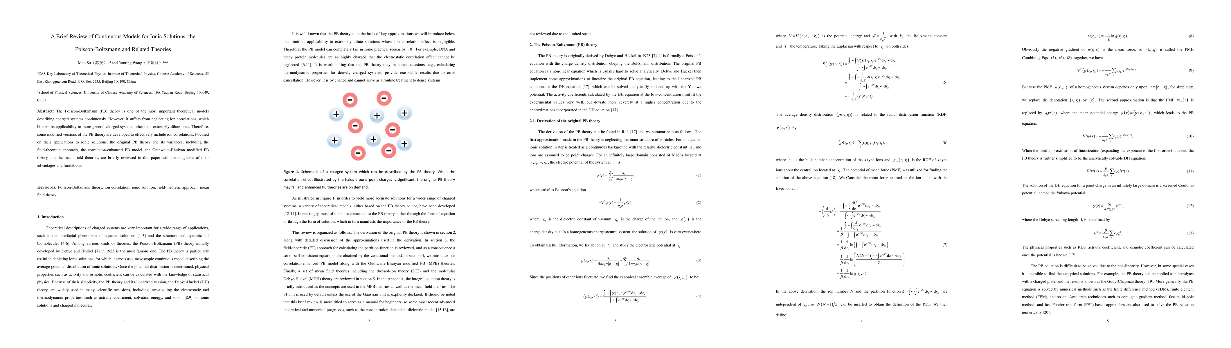 The Poisson-Boltzmann theory is a widely used model for ionic solutions but neglects ion correlations, limiting its applicability. Modified versions, such as the field-theoretic approach and correlation-enhanced models, have been developed to address this issue.