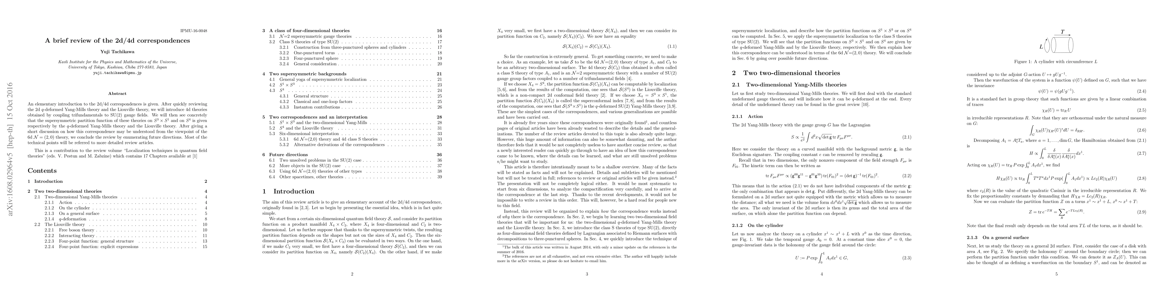 An elementary introduction to the 2d/4d correspondences is given. After quickly reviewing the 2d q-deformed Yang-Mills theory and the Liouville theory, we will introduce 4d theories obtained by coupling trifundamentals to SU(2) gauge fields. We will then see concretely that the supersymmetric partition function of these theories on S^3 x S^1 and on S^4 is given respectively by the q-deformed Yang-Mills theory and the Liouville theory. After giving a short discussion on how this correspondence may be understood from the viewpoint of the 6d N=(2,0) theory, we conclude the review by enumerating future directions. Most of the technical points will be referred to more detailed review articles.