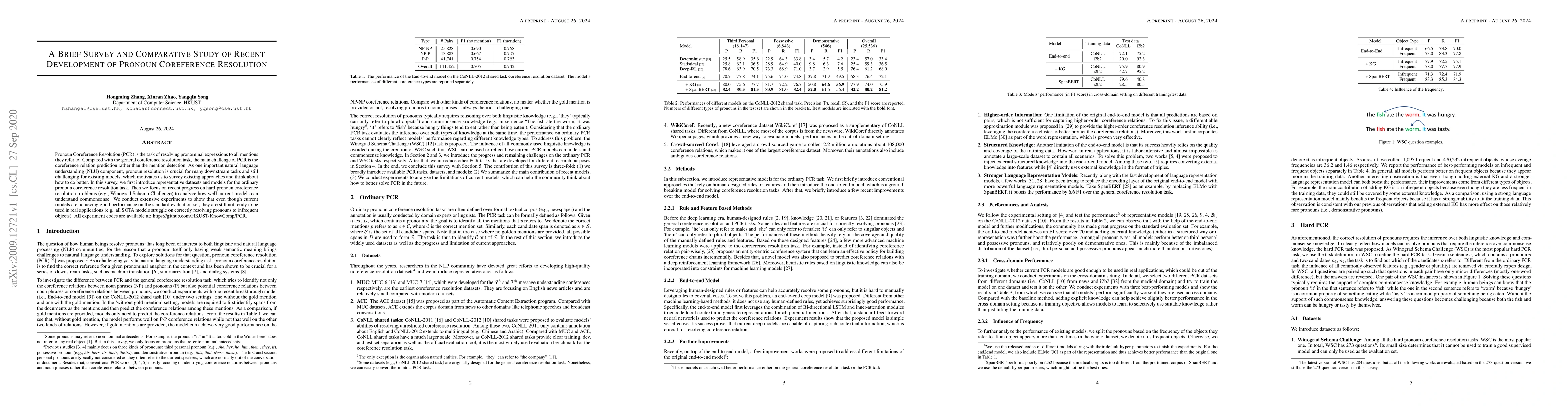This paper surveys recent advancements in Pronoun Coreference Resolution (PCR), highlighting the challenges in coreference relation prediction and evaluating existing models on standard datasets and harder tasks like the Winograd Schema Challenge. It concludes that while current models perform well on typical tests, they still struggle with infrequent objects, indicating a gap in real-world application readiness.