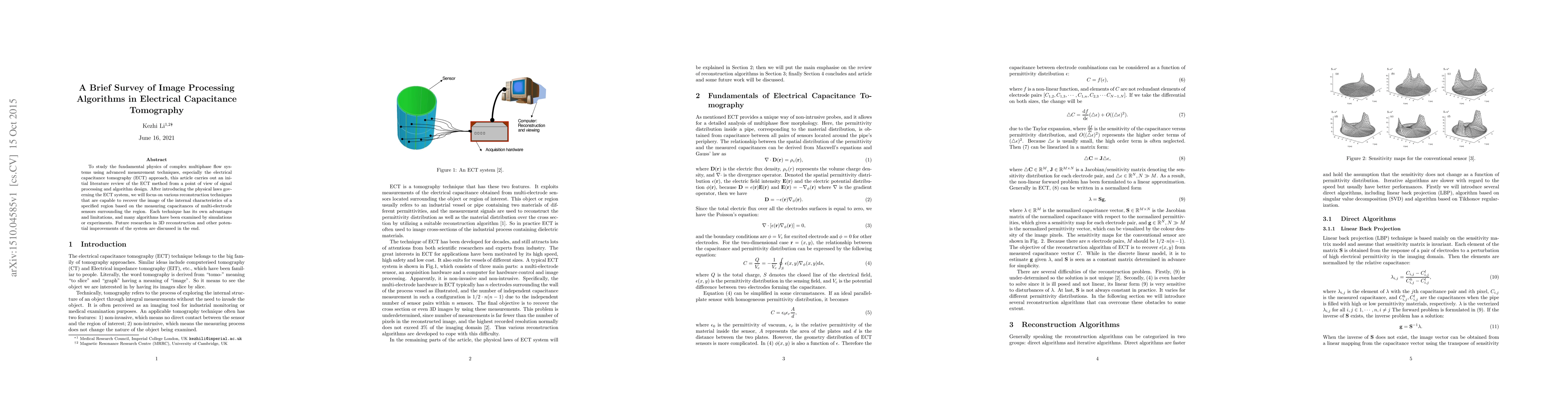 This paper reviews electrical capacitance tomography (ECT) signal processing and algorithm design, focusing on various image reconstruction techniques for visualizing internal characteristics. It discusses the advantages and limitations of these techniques and highlights future research directions in 3D reconstruction and system improvements.