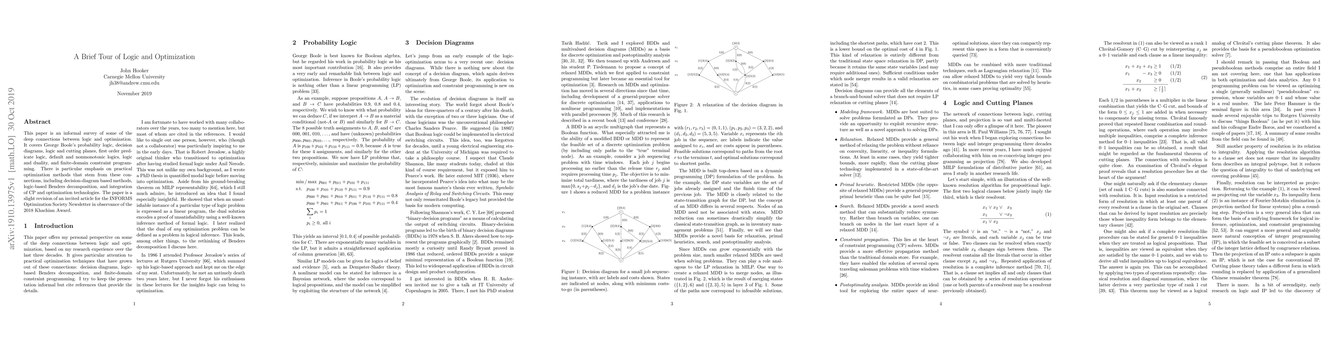 This paper explores the connections between logic and optimization, highlighting methods like decision-diagram based optimization and Benders decomposition for practical problem-solving. It covers various areas of logic and their applications in optimization to improve solution efficiency and accuracy.