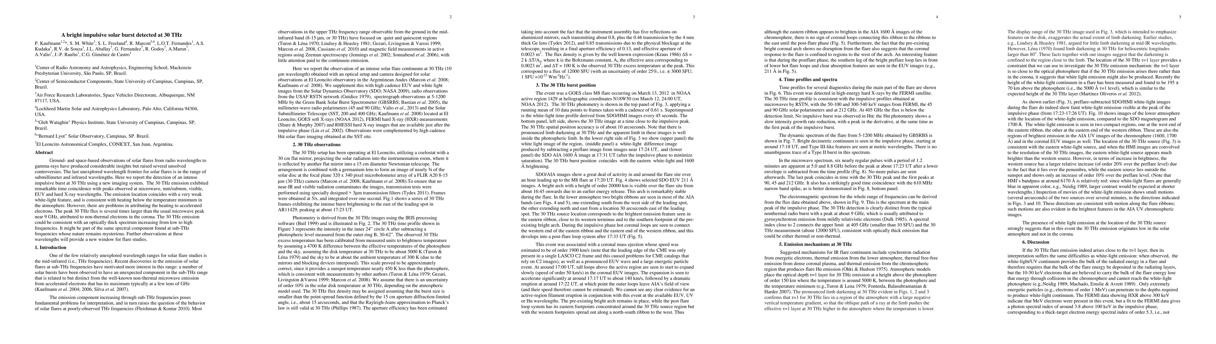 Scientists have detected a bright impulsive solar burst at 30 THz frequency, coinciding with peaks observed at multiple wavelengths, offering new insights into solar flares.