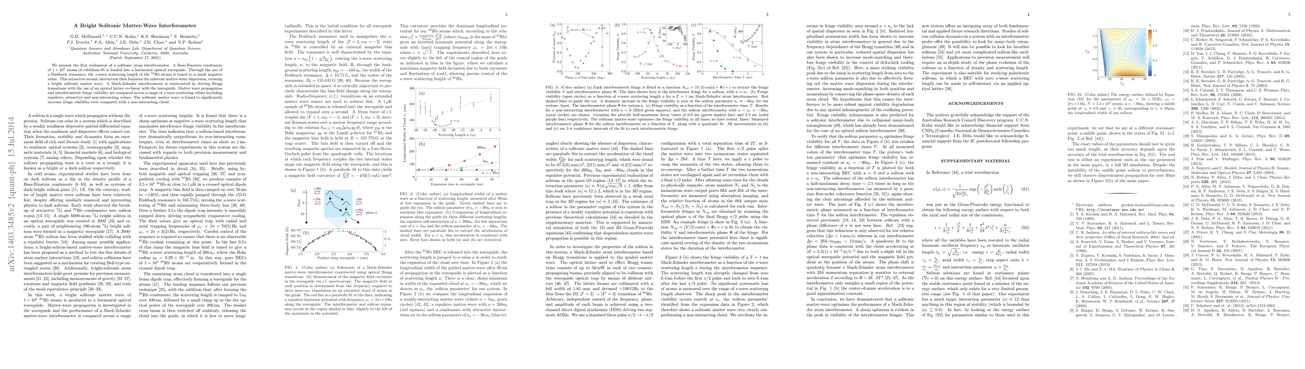 This paper reports the first solitonic atom interferometer using a Bose-Einstein condensate of rubidium-85, where attractive interactions create a bright solitonic matter wave. The study finds that this solitonic wave significantly enhances interferometric fringe visibility compared to non-interacting clouds.