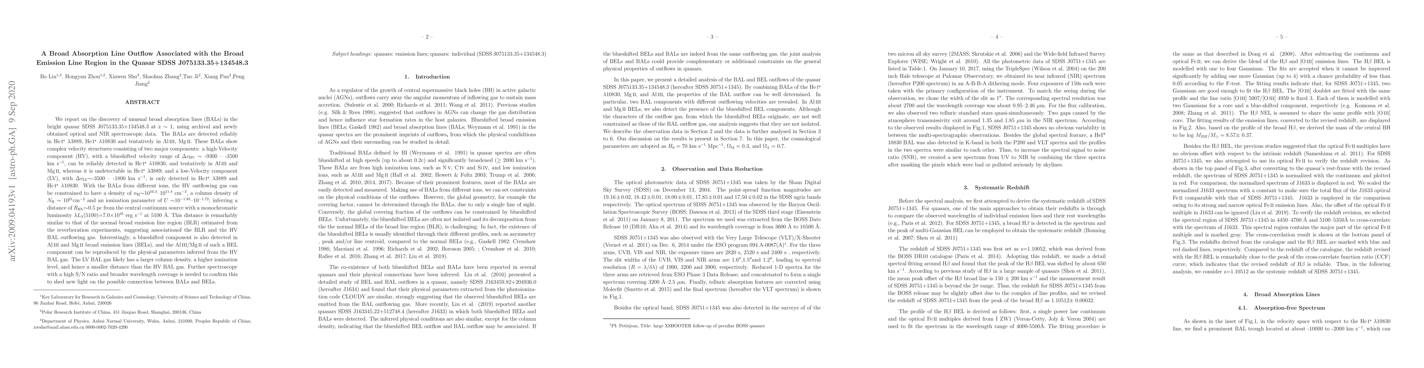 Researchers discovered a broad absorption line outflow associated with the bright quasar SDSS J075133.35+134548.3, revealing complex velocity structures that suggest an association between the broad emission line region and the outflowing gas.