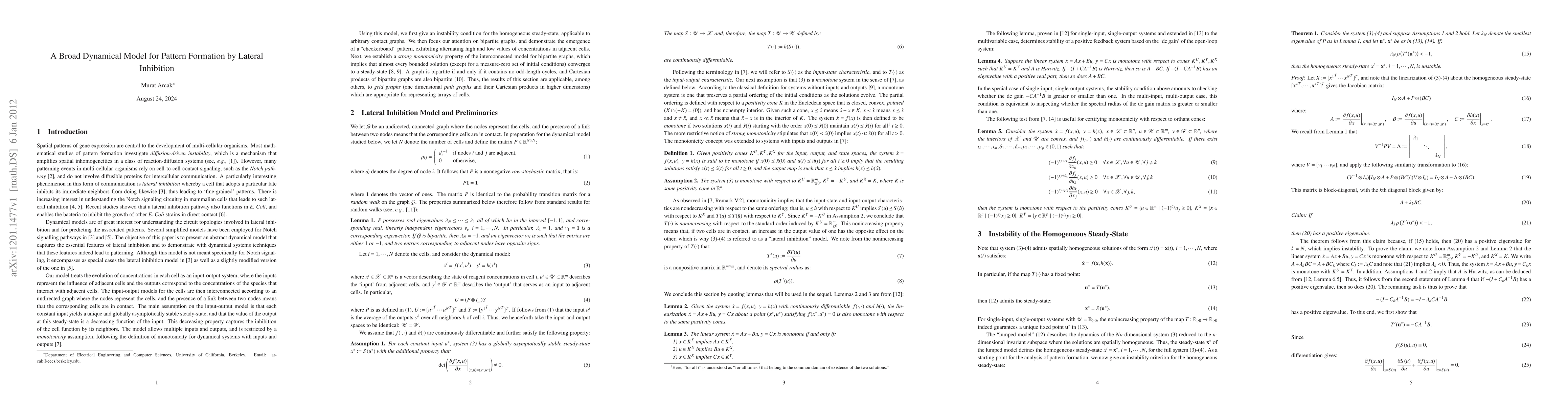 This paper proposes a broad dynamical model to understand lateral inhibition in multi-cellular organisms, focusing on the Notch pathway. It demonstrates through dynamical systems techniques that the model can predict pattern formation resulting from lateral inhibition.