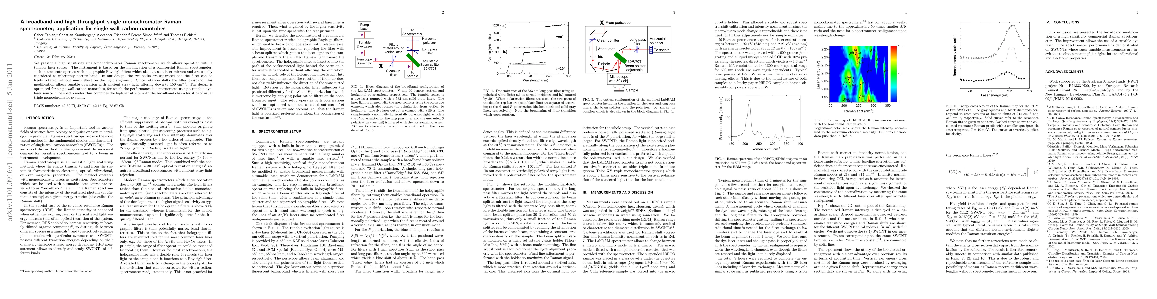 This paper introduces a high-sensitivity, broadband single-monochromator Raman spectrometer designed for tunable laser operation, optimized for analyzing single-wall carbon nanotubes. The design separates the laser mirror and filter functions, enabling efficient stray light filtering and tunable operation.