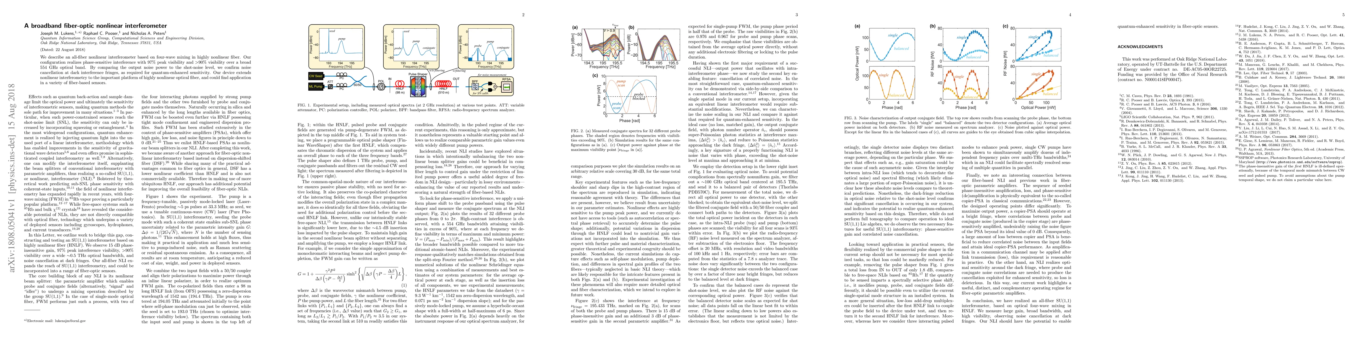 This paper presents an all-fiber nonlinear interferometer utilizing four-wave mixing in highly nonlinear fiber, achieving phase-sensitive interference with high visibility over a broad optical band. The device demonstrates noise cancellation at dark fringes, indicating potential for quantum-enhanced sensitivity and applications in fiber-based sensors.