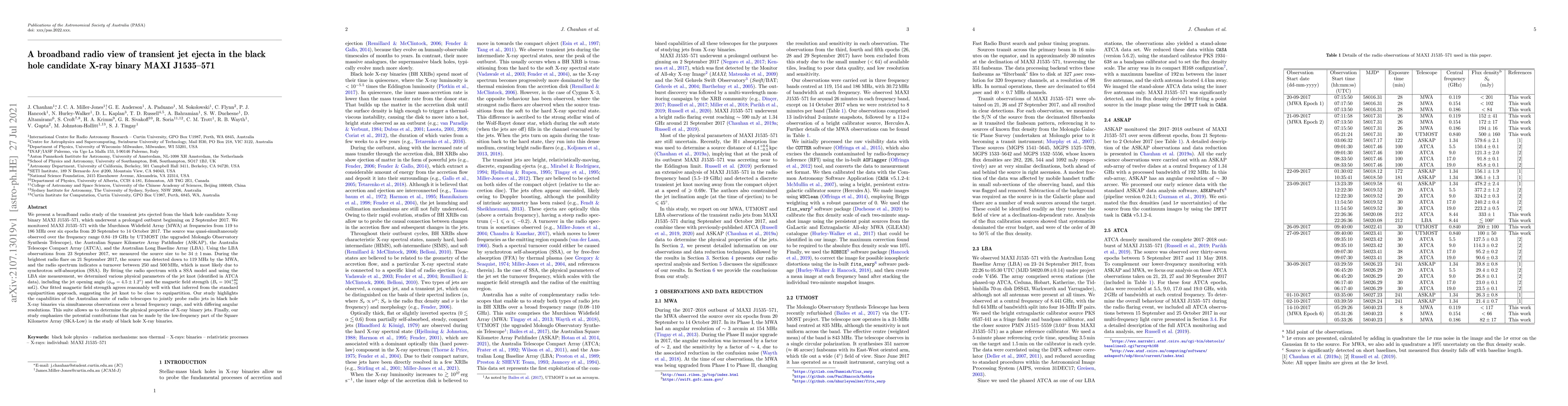 This study uses a suite of Australian radio telescopes to analyze transient jets from the black hole candidate MAXI J1535-571 during a 2017 outburst. The research determined the jet's size, opening angle, and magnetic field strength, revealing the potential of low-frequency observations for future black hole X-ray binary studies.