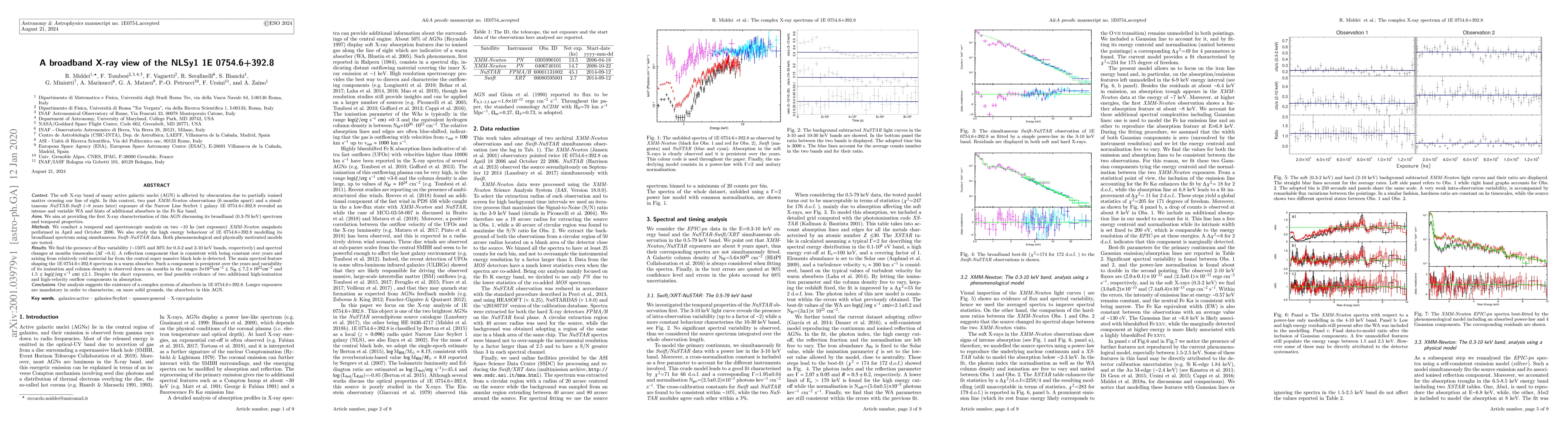 The research characterizes the broadband X-ray spectrum of Narrow Line Seyfert 1 galaxy 1E 0754.6+392.8, revealing significant flux variability and spectral changes over months. A persistent warm absorber, with varying ionization and column density, shapes its spectrum. Possible evidence of two additional highly ionized outflow components was also found, suggesting a complex outflow requiring longer observation for full characterization.