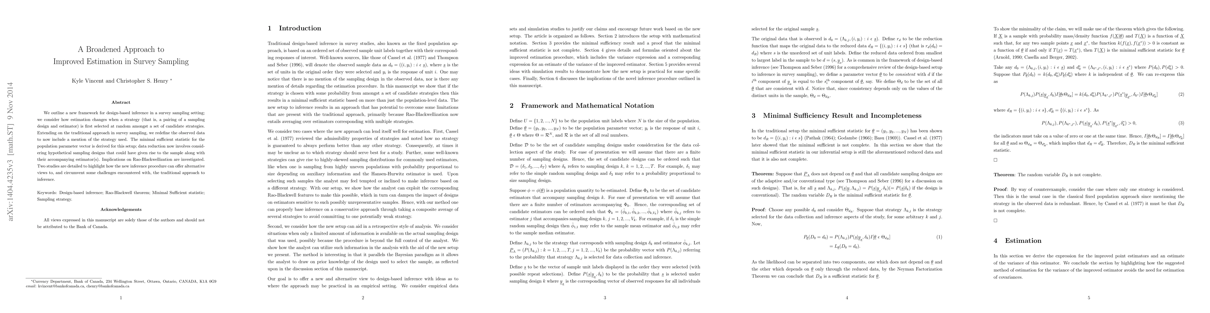 We introduce a new sufficient statistic for the population parameter vector by allowing for the sampling design to first be selected at random amongst a set of candidate sampling designs. In contrast to the traditional approach in survey sampling, we achieve this by defining the observed data to include a mention of the sampling design used for the data collection aspect of the study. We show that the reduced data consisting of the unit labels together with their corresponding responses of interest is a sufficient statistic under this setup. A Rao-Blackwellization inference procedure is outlined and it is shown how averaging over hypothetical observed data outcomes results in improved estimators; the improved strategy includes considering all possible sampling designs in the candidate set that could have given rise to the reduced data. Expressions for the variance of the Rao-Blackwell estimators are also derived. The results from two simulation studies are presented to demonstrate the practicality of our approach. A discussion on how our approach can be useful when the analyst has limited information on the data collection procedure is also provided.