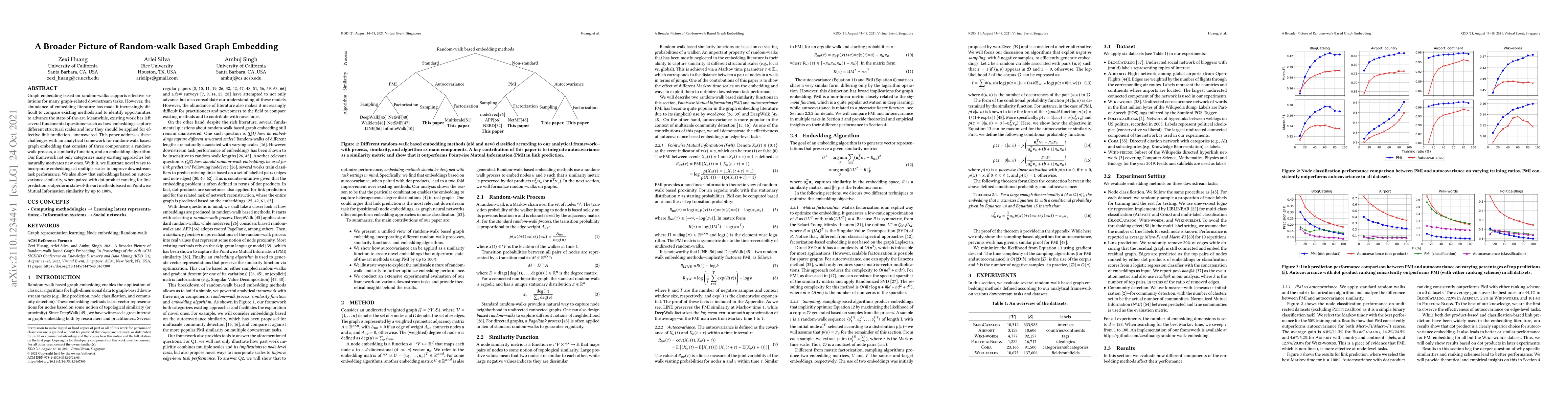 Graph embedding based on random-walks supports effective solutions for many graph-related downstream tasks. However, the abundance of embedding literature has made it increasingly difficult to compare existing methods and to identify opportunities to advance the state-of-the-art. Meanwhile, existing work has left several fundamental questions -- such as how embeddings capture different structural scales and how they should be applied for effective link prediction -- unanswered. This paper addresses these challenges with an analytical framework for random-walk based graph embedding that consists of three components: a random-walk process, a similarity function, and an embedding algorithm. Our framework not only categorizes many existing approaches but naturally motivates new ones. With it, we illustrate novel ways to incorporate embeddings at multiple scales to improve downstream task performance. We also show that embeddings based on autocovariance similarity, when paired with dot product ranking for link prediction, outperform state-of-the-art methods based on Pointwise Mutual Information similarity by up to 100%.
