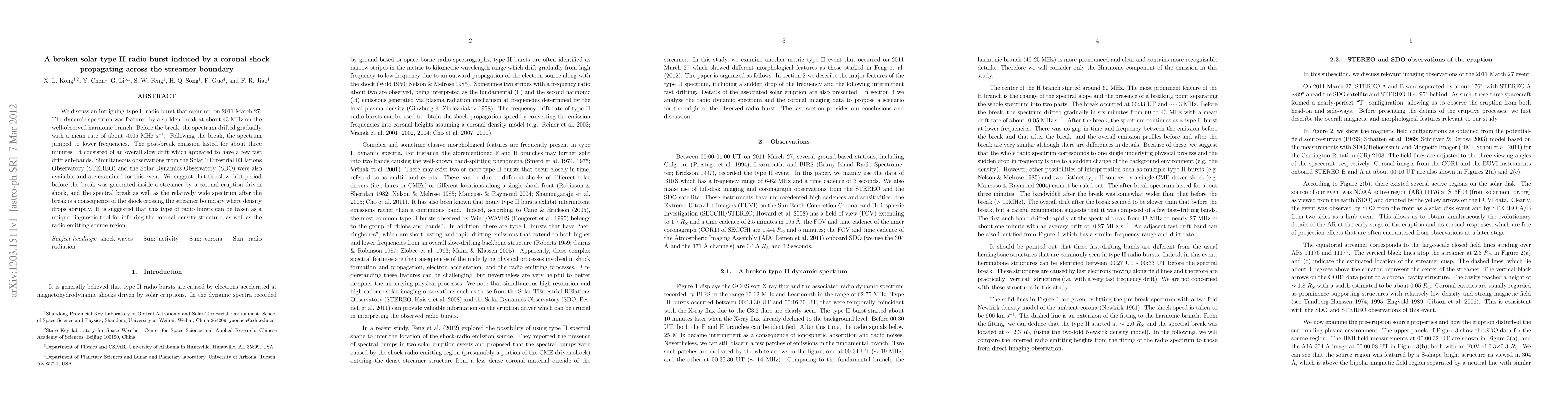 The paper presents a detailed analysis of a broken type II radio burst, attributing the break to a coronal shock crossing the streamer boundary, and suggests its use as a diagnostic tool for coronal density structure.