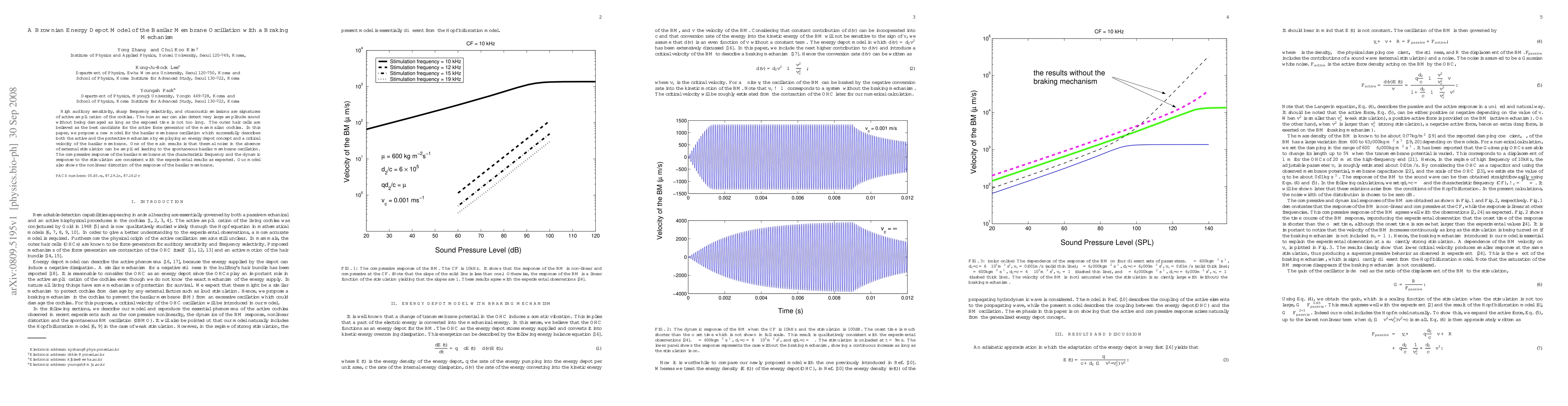 This paper proposes a novel Brownian energy depot model for basilar membrane oscillation, incorporating a braking mechanism to explain active amplification and protection in the cochlea. The model demonstrates spontaneous oscillation due to thermal noise and aligns with experimental observations of frequency selectivity and nonlinear distortion.