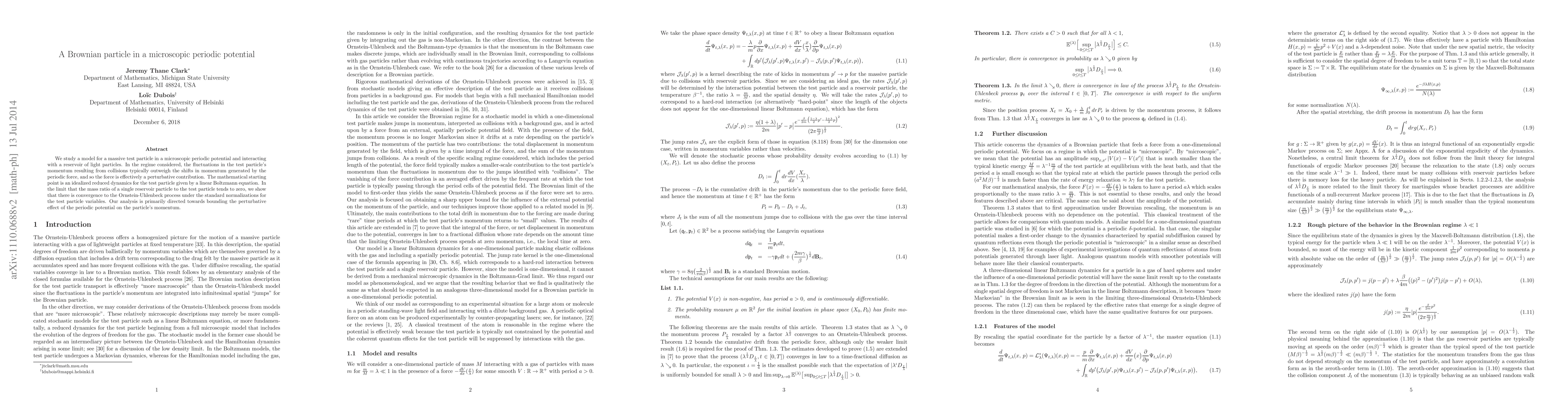 This paper investigates a Brownian particle in a microscopic periodic potential interacting with a light particle reservoir, showing that the periodic force acts as a perturbation. It demonstrates convergence to an Ornstein-Uhlenbeck process under certain mass ratios, focusing on the perturbative effect of the periodic potential on the particle's momentum.