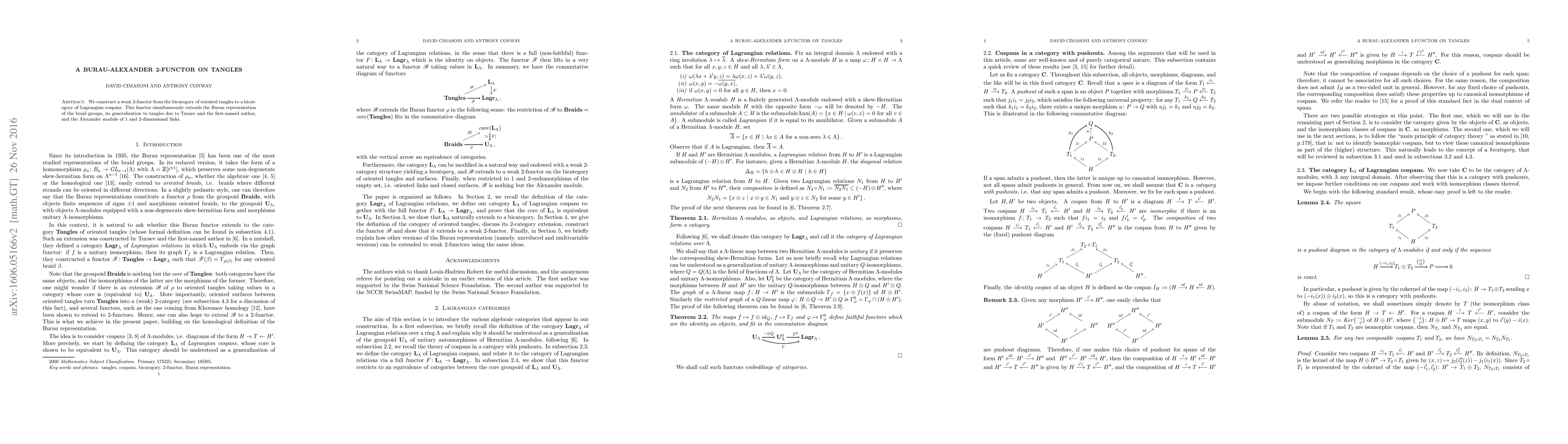 This paper constructs a weak 2-functor linking the bicategory of oriented tangles to one of Lagrangian cospans, extending the Burau representation of braid groups and Turaev's tangle generalization, alongside the Alexander module for links.