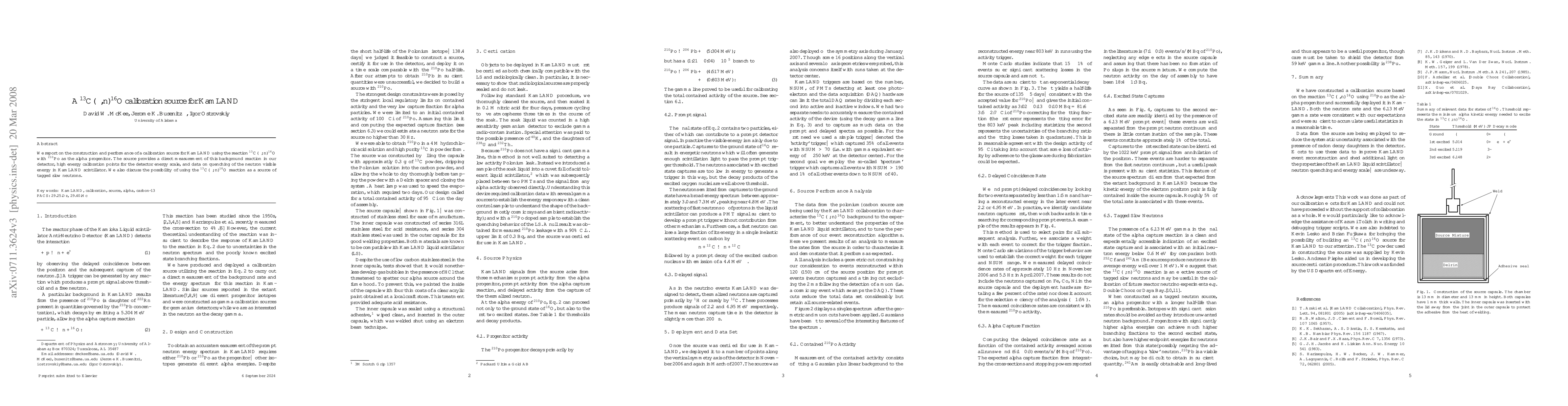 The research presents a C-13(alpha,n)O-16 calibration source for the KamLAND detector, offering measurements of background reactions, energy scale calibration, and neutron energy quenching in scintillator. Additionally, it explores the potential of using this reaction for tagged slow neutron generation.