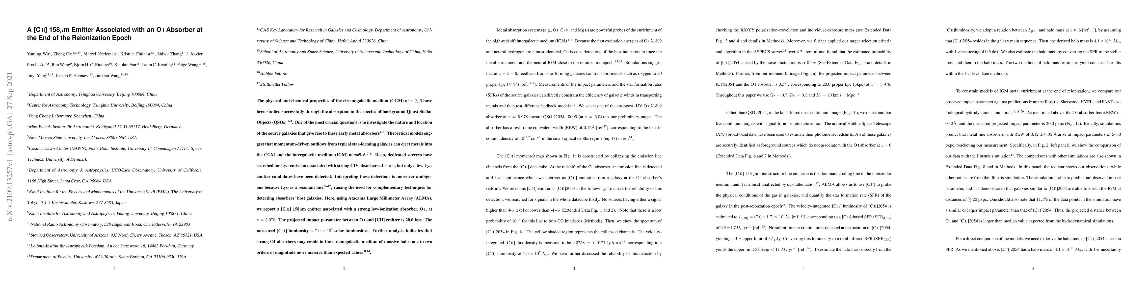 This paper uses ALMA to identify a [C II] 158µm emitter linked with a strong OI absorber at $z=5.978$, suggesting that such absorbers may originate in the circumgalactic medium of exceptionally massive halos. The findings provide a complementary technique to detect the host galaxies of early metal absorbers.