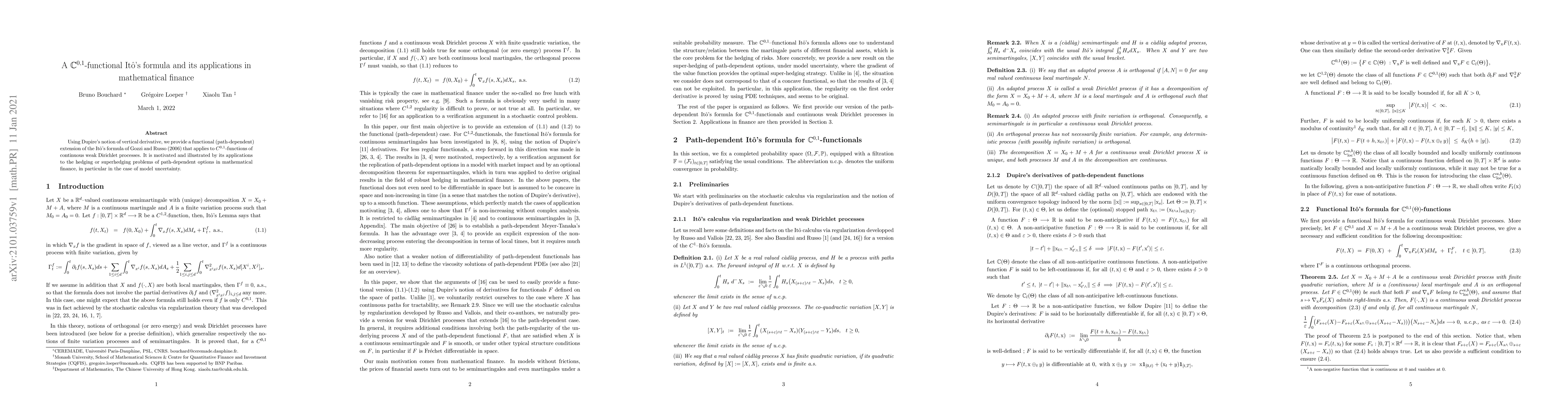 Summary: This paper extends Itô's formula to $C^{0,1}$-functions of continuous weak Dirichlet processes, using Dupire's vertical derivative concept, and applies it to path-dependent option hedging problems in mathematical finance, especially under model uncertainty.
