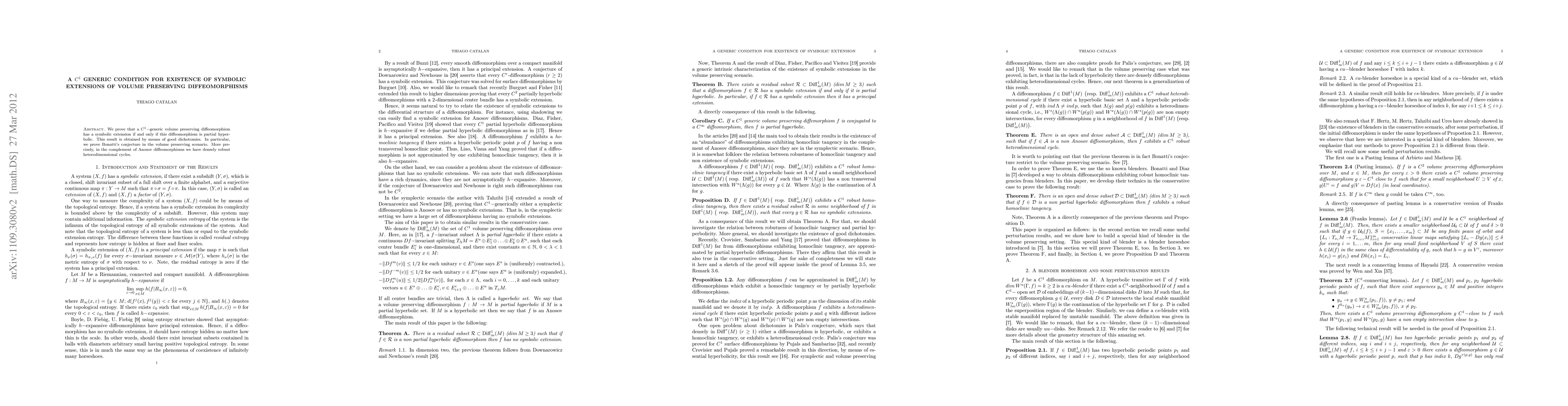 Summary: This paper demonstrates that C1-generic volume-preserving diffeomorphisms possess symbolic extensions if and only if they are partial hyperbolic, proving Bonatti's conjecture in this context and showing the existence of densely robust heterodimensional cycles outside Anosov diffeomorphisms.