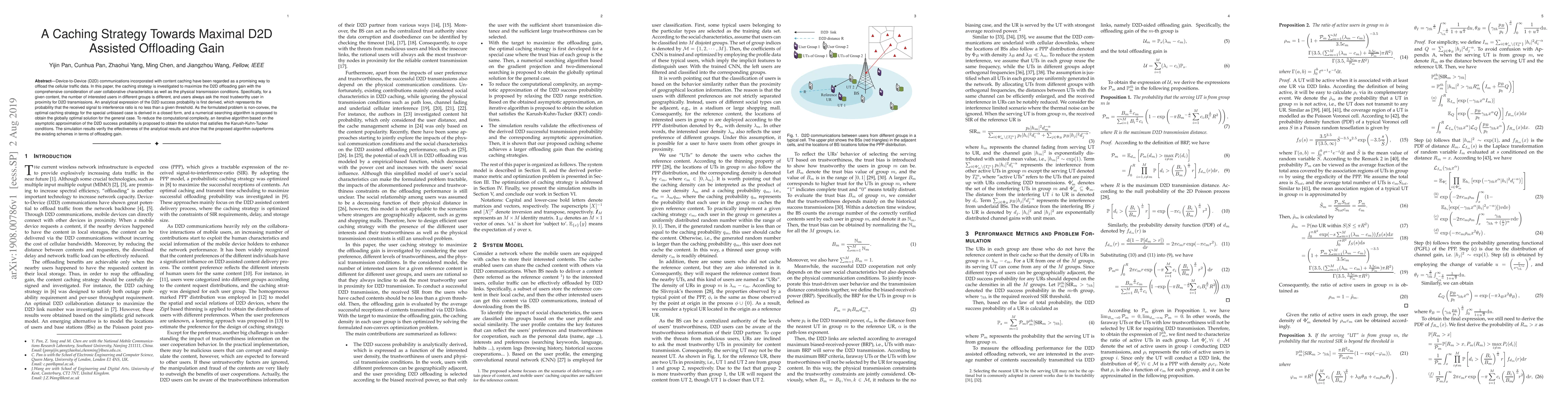 This paper explores a caching strategy to maximize Device-to-Device (D2D) offloading gain in cellular networks by considering user collaboration and physical transmission conditions. It proposes an analytical expression and algorithm to optimize D2D success probability and achieve the best offloading gain.