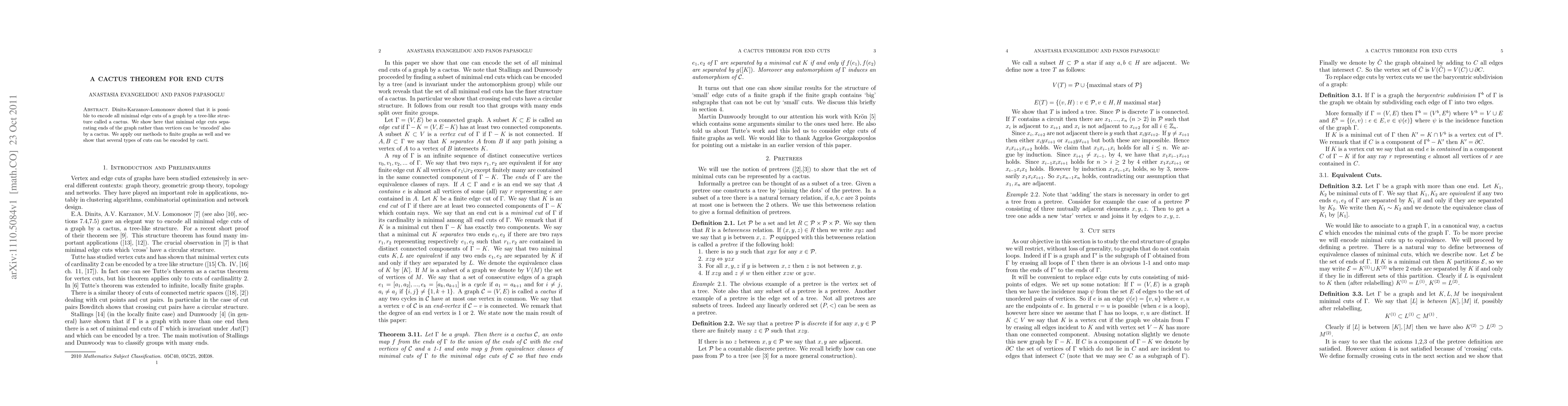 This paper extends the cactus theorem to encode minimal edge cuts separating ends of a graph rather than vertices, demonstrating its applicability to both finite graphs and various types of cuts. The cactus structure remains a key tool for representing these end cuts.