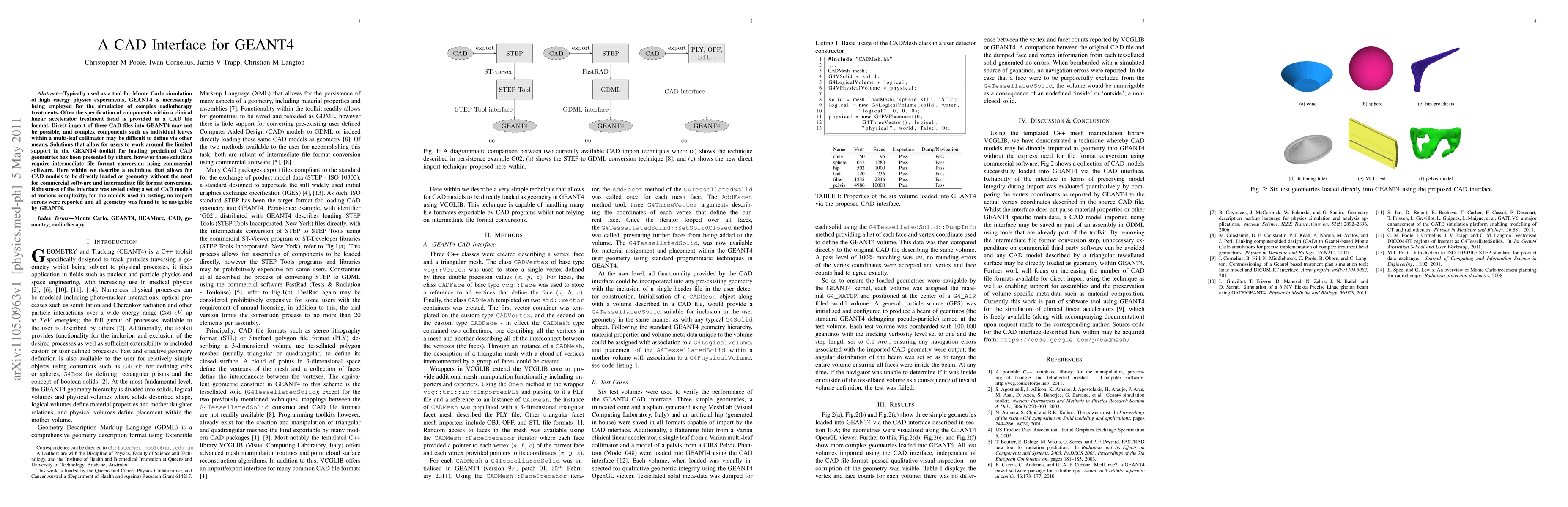 The introduction of a C++-based CAD interface for GEANT4 that directly loads CAD models without intermediate file format conversions using the VCGLIB library.