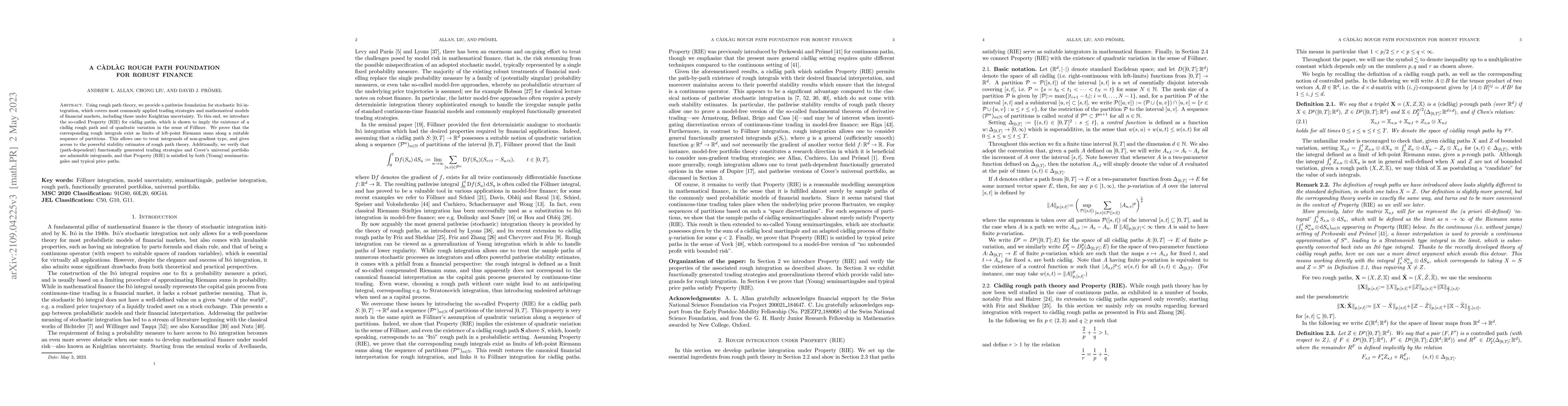 This paper establishes a robust financial foundation using rough path theory for stochastic Itô integration, applicable to various trading strategies and market models, including those under Knightian uncertainty. It introduces Property (RIE) for càdlàg paths, ensuring the existence of rough paths and quadratic variation, and proves the existence of rough integrals as limits of Riemann sums.