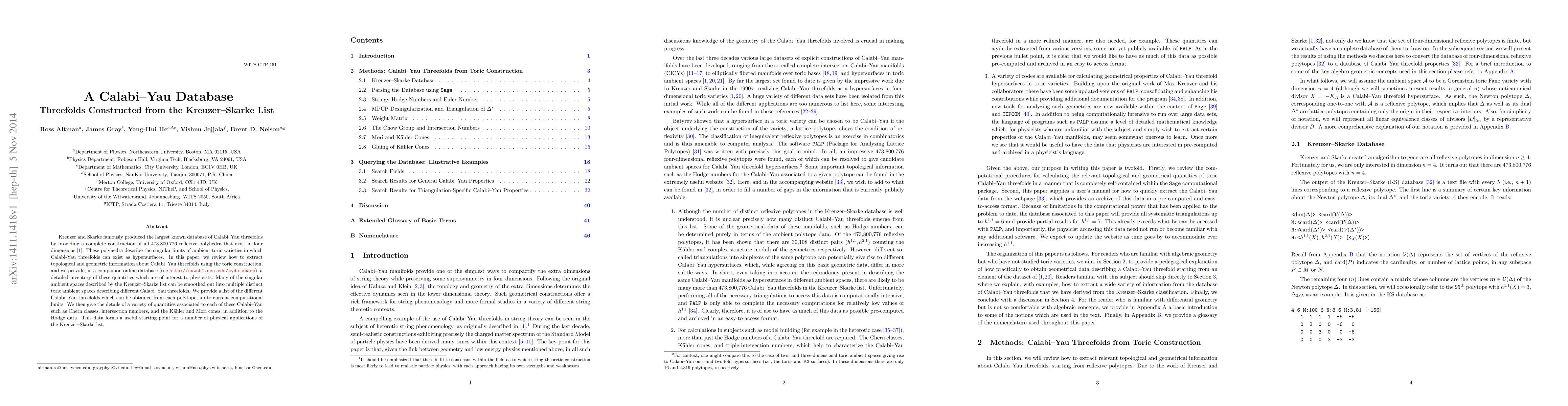 Kreuzer and Skarke famously produced the largest known database of Calabi-Yau threefolds by providing a complete construction of all 473,800,776 reflexive polyhedra that exist in four dimensions. These polyhedra describe the singular limits of ambient toric varieties in which Calabi-Yau threefolds can exist as hypersurfaces. In this paper, we review how to extract topological and geometric information about Calabi-Yau threefolds using the toric construction, and we provide, in a companion online database (see http://nuweb1.neu.edu/cydatabase), a detailed inventory of these quantities which are of interest to physicists. Many of the singular ambient spaces described by the Kreuzer-Skarke list can be smoothed out into multiple distinct toric ambient spaces describing different Calabi-Yau threefolds. We provide a list of the different Calabi-Yau threefolds which can be obtained from each polytope, up to current computational limits. We then give the details of a variety of quantities associated to each of these Calabi-Yau such as Chern classes, intersection numbers, and the K\"ahler and Mori cones, in addition to the Hodge data. This data forms a useful starting point for a number of physical applications of the Kreuzer-Skarke list.
