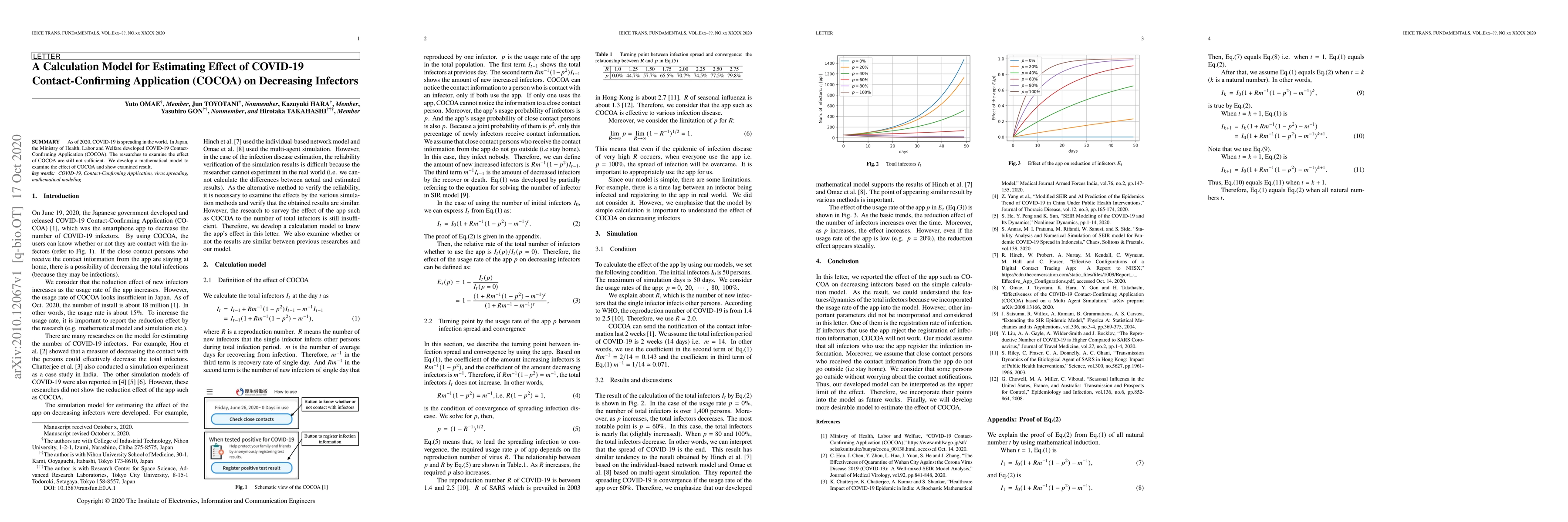 Researchers developed a mathematical model to estimate the effect of COVID-19 Contact-Confirming Application (COCOA) on decreasing infectors in Japan. The study aimed to fill gaps in understanding COCOA's impact on slowing down the spread of COVID-19.