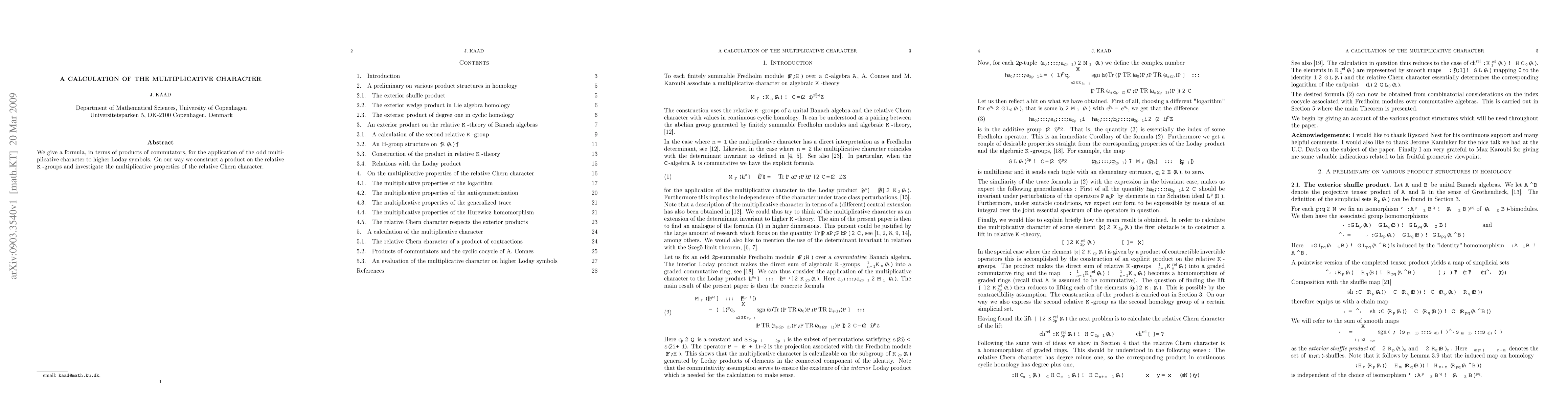 Summary: The paper derives a formula for the odd multiplicative character applied to higher Loday symbols using products of commutators. It also constructs a product on relative K-groups and explores the multiplicative properties of the relative Chern character.