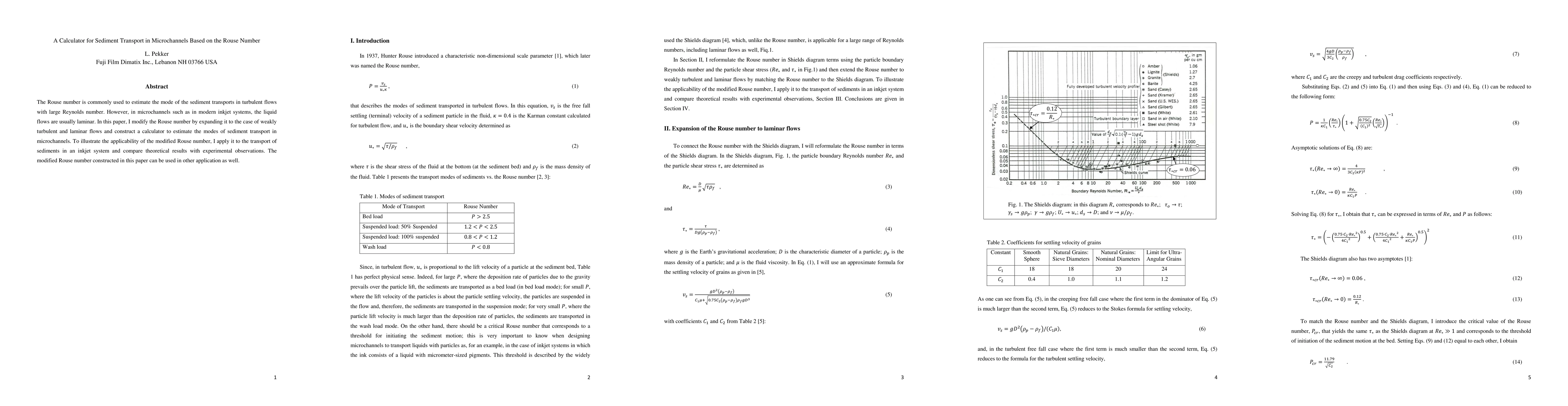 This paper modifies the Rouse number to estimate sediment transport modes in laminar flows of microchannels, like those in inkjet systems. It presents a calculator and compares theoretical predictions with experimental results, demonstrating the modified Rouse number's applicability in various microchannel applications.