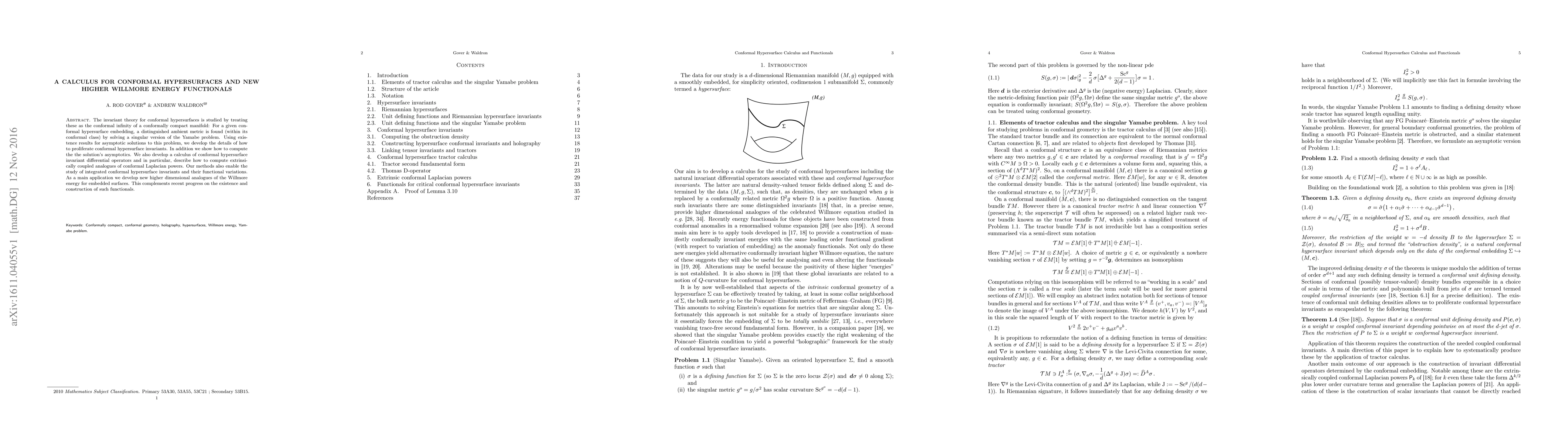 This paper develops a calculus for conformal hypersurfaces and introduces new higher dimensional analogues of the Willmore energy. It constructs a distinguished ambient metric for conformal hypersurfaces and explores conformal invariants, leading to the computation of conformal Laplacian powers and integrated conformal hypersurface invariants.