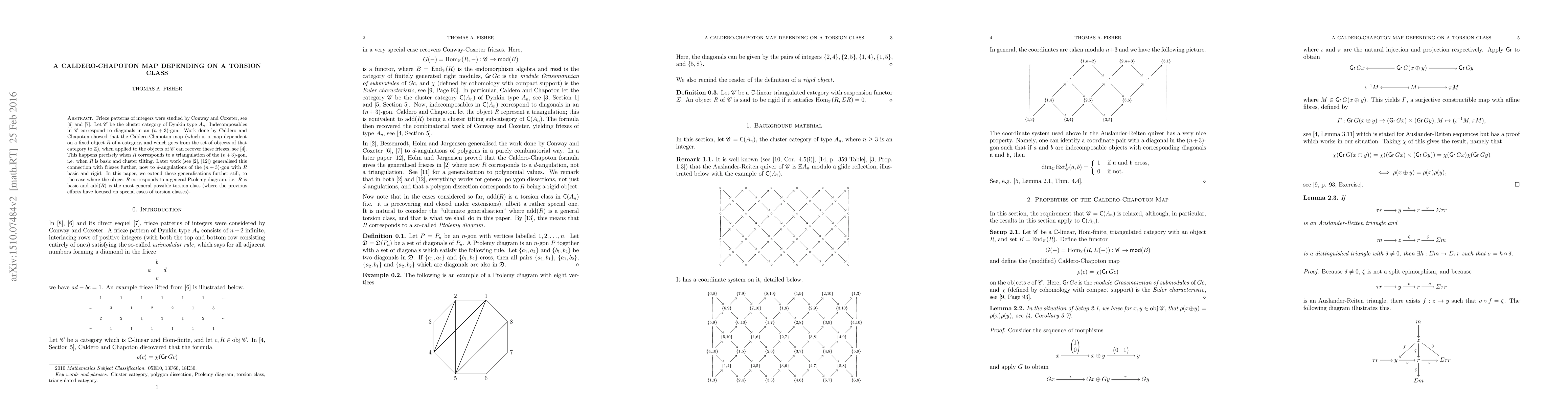 This paper extends the Caldero-Chapoton map to a more general torsion class, showing that it can recover frieze patterns when the object $R$ corresponds to a Ptolemy diagram, thus generalizing previous work on $d$-angulations of an $(n+3)$-gon.