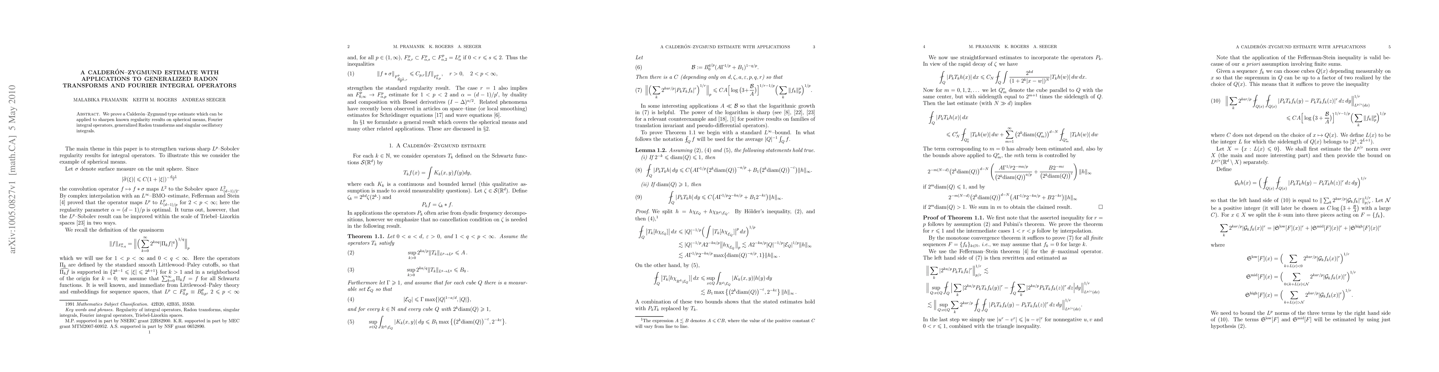 Summary: This paper establishes a Calderón-Zygmund estimate that enhances regularity results for spherical means, Fourier integral operators, and generalized Radon transforms. The new estimate provides improved theoretical insights into these mathematical constructs.