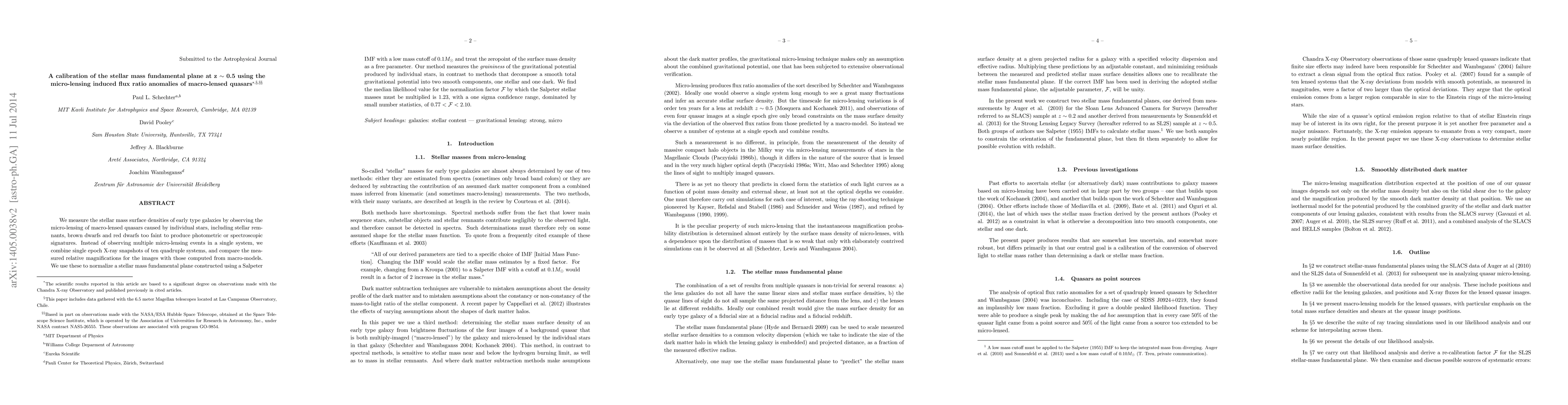 A study uses micro-lensing events of macro-lensed quasars to measure stellar mass surface densities in early-type galaxies with a calibration factor indicating the need for correction from a single IMF.