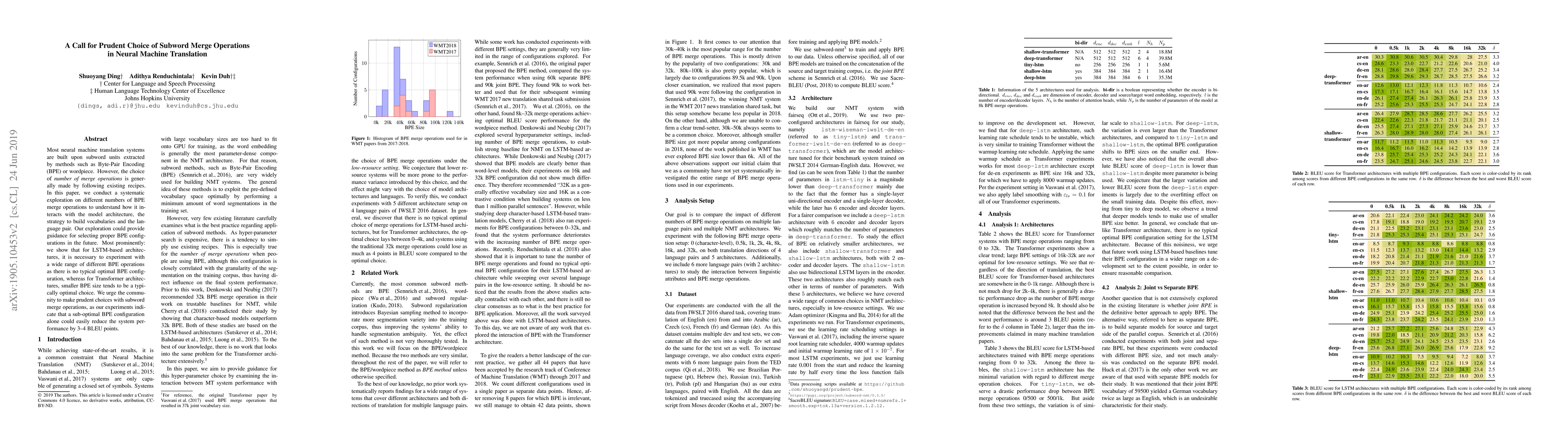 Most neural machine translation systems are built upon subword units extracted by methods such as Byte-Pair Encoding (BPE) or wordpiece. However, the choice of number of merge operations is generally made by following existing recipes. In this paper, we conduct a systematic exploration on different numbers of BPE merge operations to understand how it interacts with the model architecture, the strategy to build vocabularies and the language pair. Our exploration could provide guidance for selecting proper BPE configurations in the future. Most prominently: we show that for LSTM-based architectures, it is necessary to experiment with a wide range of different BPE operations as there is no typical optimal BPE configuration, whereas for Transformer architectures, smaller BPE size tends to be a typically optimal choice. We urge the community to make prudent choices with subword merge operations, as our experiments indicate that a sub-optimal BPE configuration alone could easily reduce the system performance by 3-4 BLEU points.