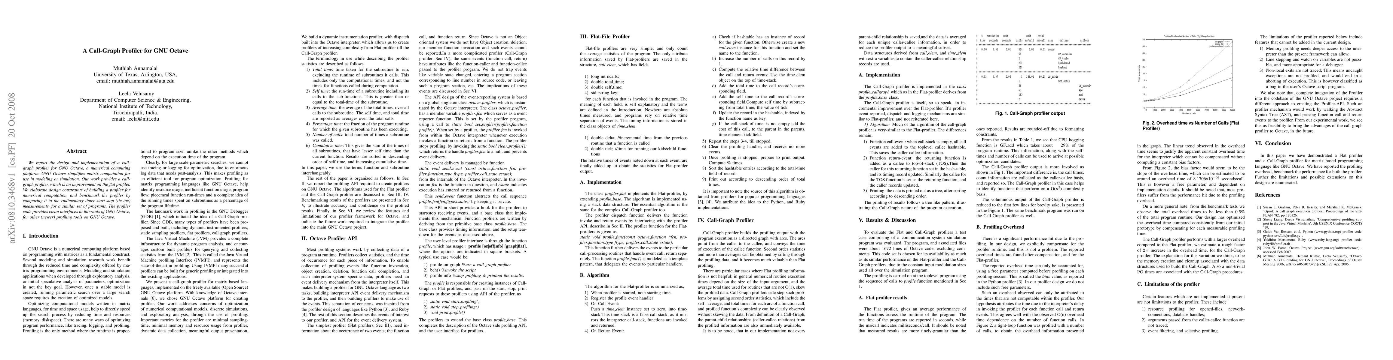 This paper presents a call-graph profiler for GNU Octave, enhancing numerical computation profiling over traditional timer measurements, and provides interfaces for integrating with future profiling tools. Benchmarking shows improved profiling accuracy compared to basic timer methods.
