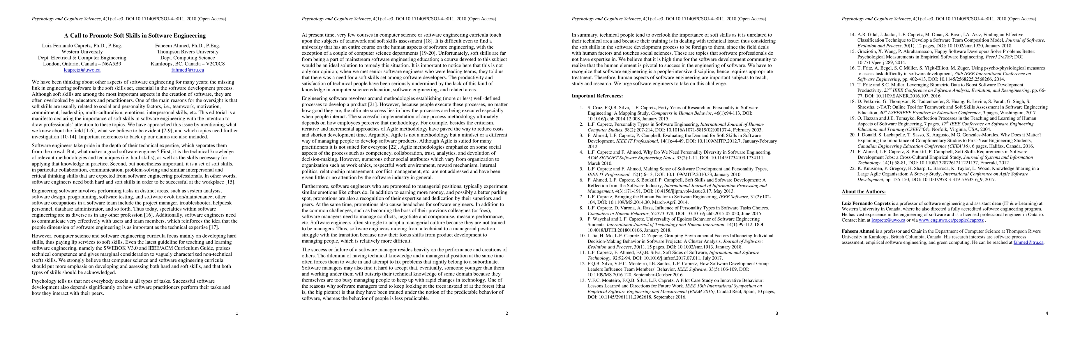 This paper argues for the critical importance of soft skills in software engineering, emphasizing that while technical expertise is valued, soft skills like teamwork, communication, and problem-solving are equally essential for successful software development. The authors call for greater attention to these often-overlooked skills in both education and professional practice.