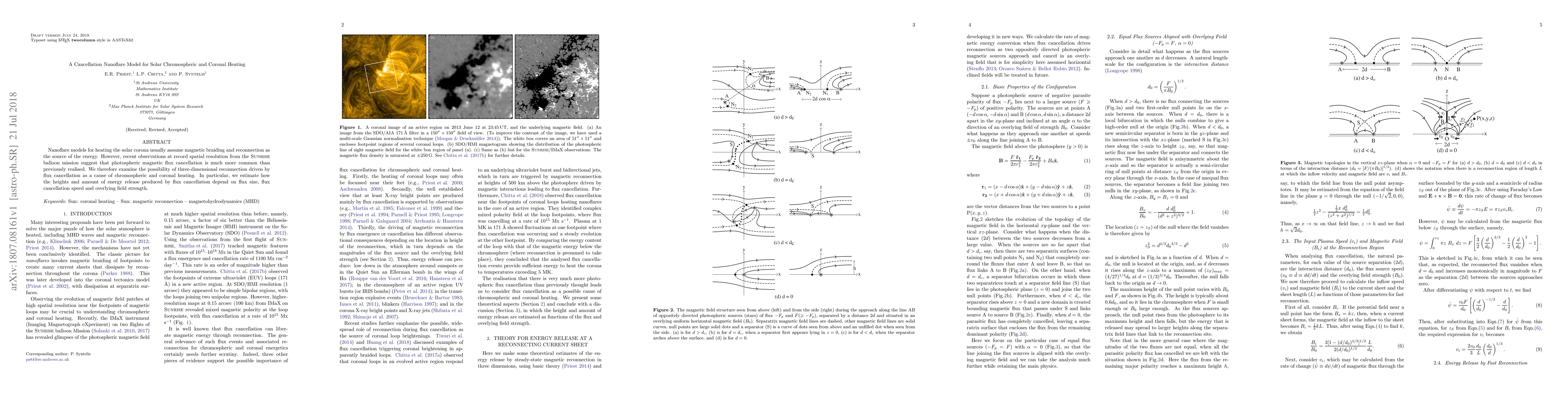 This paper explores a cancellation nanoflare model for solar chromospheric and coronal heating, proposing that photospheric magnetic flux cancellation, driven by recent high-resolution observations, may be a significant source of energy. It investigates the relationship between the energy release, height, and factors like flux size, cancellation speed, and overlying magnetic field strength.
