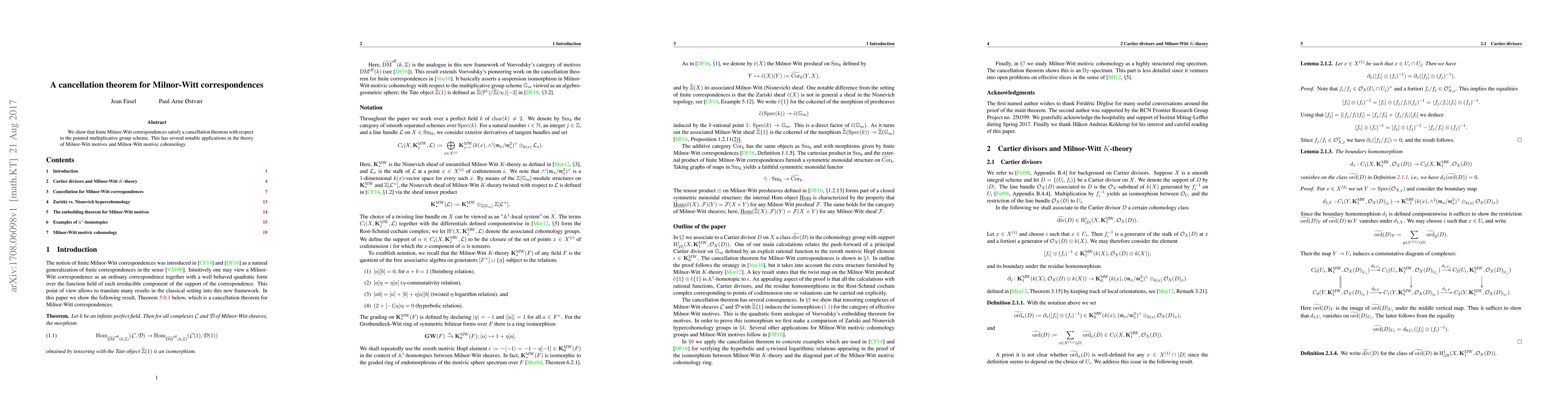 Summary: This paper demonstrates a cancellation theorem for finite Milnor-Witt correspondences concerning the pointed multiplicative group scheme, with significant implications for Milnor-Witt motives and motivic cohomology.