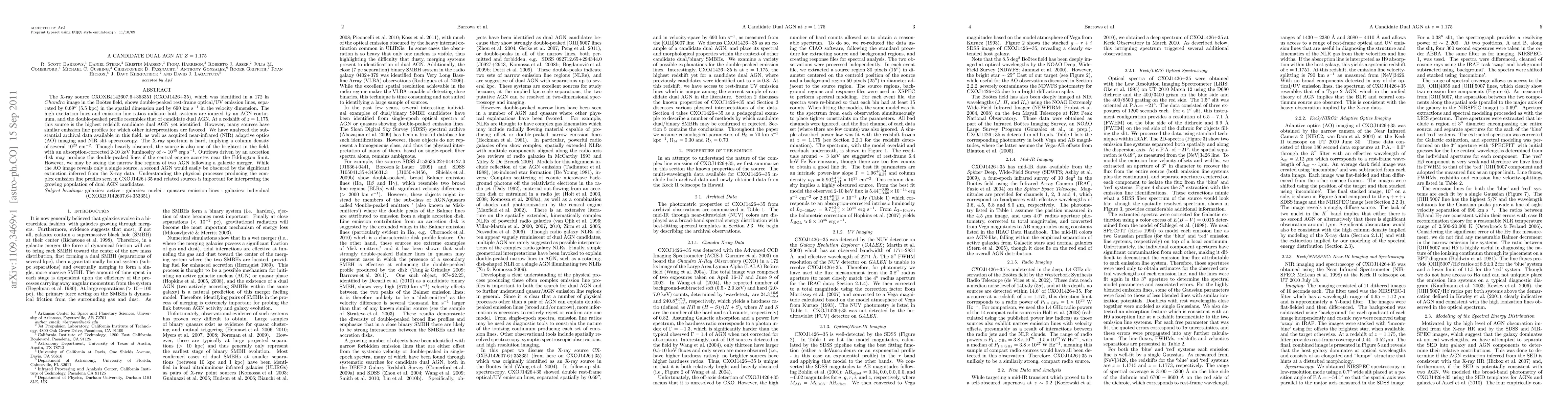 This paper identifies a high-redshift (z=1.175) X-ray source with double-peaked emission lines, suggesting a candidate dual active galactic nucleus (AGN) in the process of merging. The complex emission profiles hint at either outflows from an accretion disk or two AGNs in close proximity.